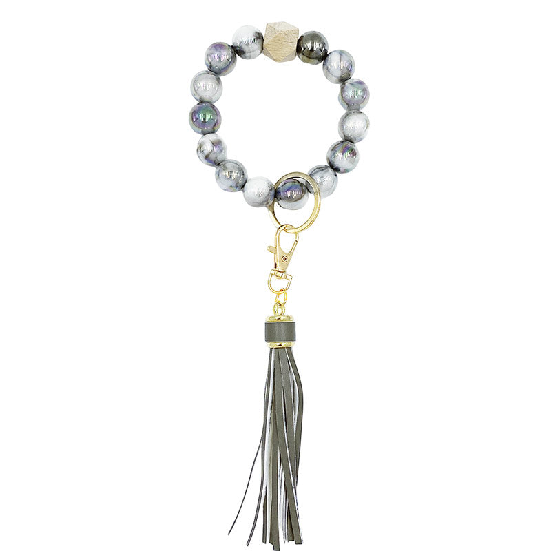 Product comob: Colored beads, beech wood beads, PU tassels, alloy keychain.